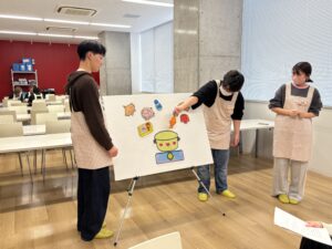 学生たちは、「カレーライスのうた」に合わせて、パネルシアターに取り組みます。