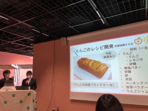 本学からは「りんごの抹茶パウンドケーキ」を持参しました。前日に一生懸命作ったパウンドケーキ、果たしてみなさんの反応は?
