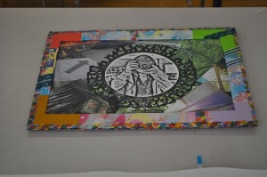 こちらはコラージュ作品ですね。自分が撮影した写真は勿論、包装紙や雑誌の切り抜きなどを上手に配置し、とてもセンスの良い作品に仕上がりました!ただ四角い枠の中に収まるのではなく、外に色々飛び出しているのが良いですね。
