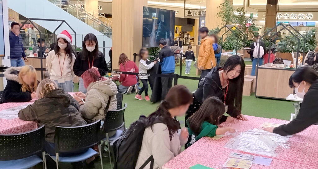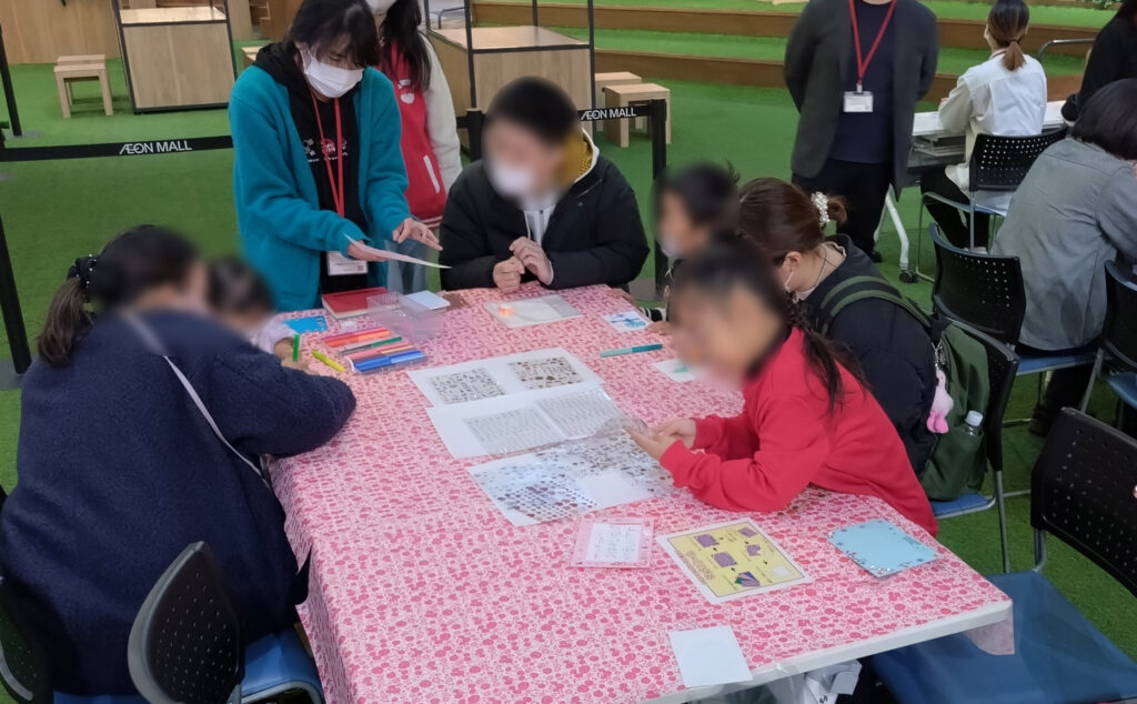 学内で行われたワークショップコンペティションにて採用となった学生さんを中心に、5名の学生で準備から実施まで行い、子どもから大人まで幅広い世代が参加して、笑顔あふれる時間となりました。