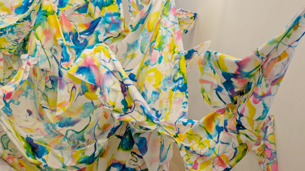本展では、インク、布、LEDライト、ワイヤーなど多様な素材を組み合わせた大型インスタレーションを発表します。作家が歩んできた日々、出会った人々への感謝、そして内側に育まれた感情の機微を、光と色彩の調和によって描き出します。