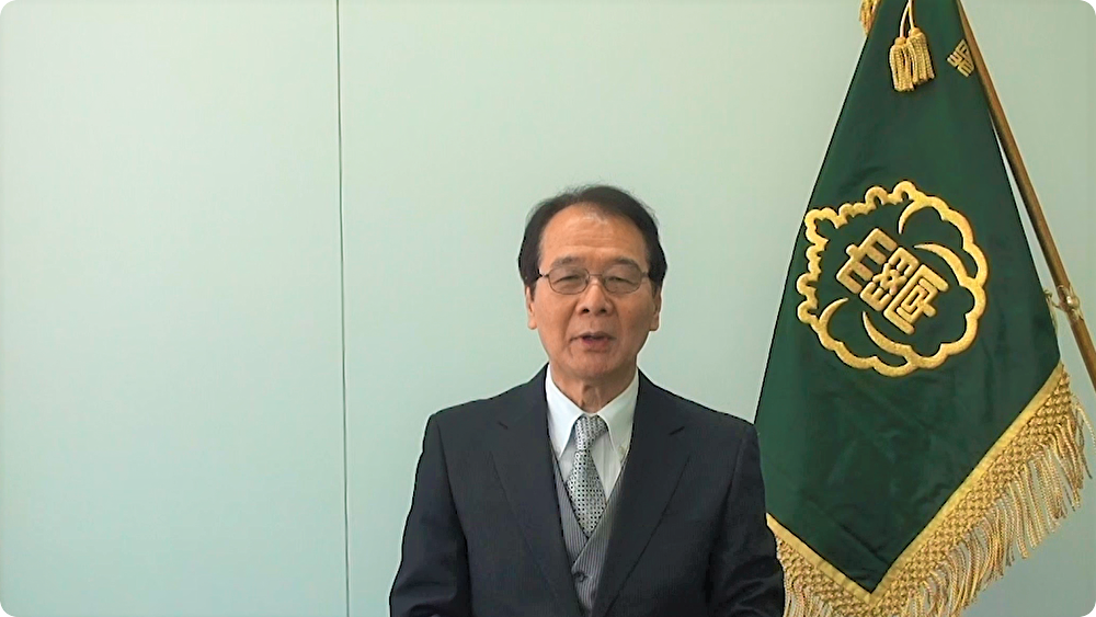 はじめに、山﨑純一学長より、動画によるご祝辞をいただきました。