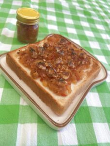 りんごジャムにみそをきかせ、トーストに塗ります。