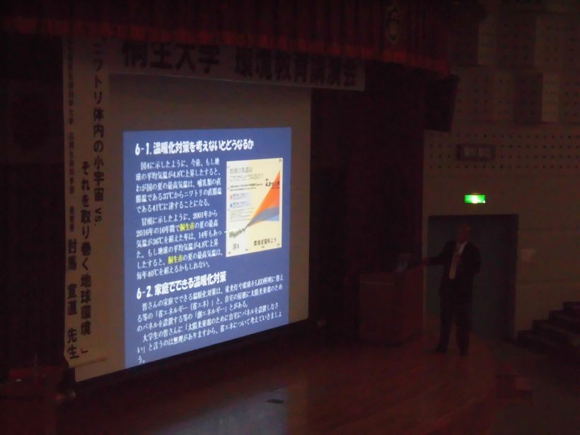平成29年9月22日(金)に、毎年恒例の「環境教育講演会」が桐生大学平成記念ホールで開催されました。