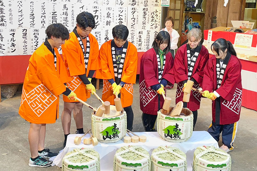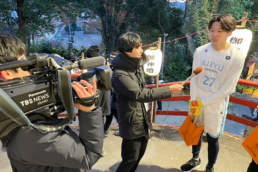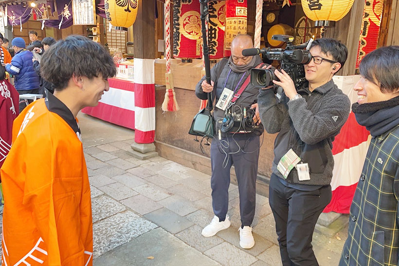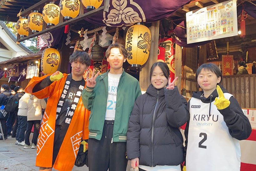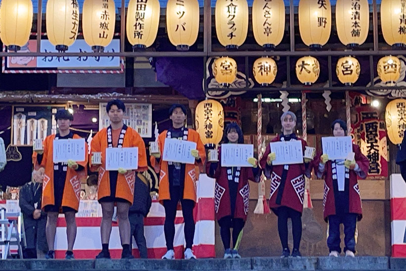 前日のくじ引きの抽選の結果、本学の学生は男女合わせて4名が走り、福男選びで三番福になりました!!