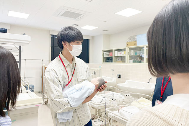 次に②についてですが、今回は私以外に看護学科4年生(見学当時3年)の学生スタッフと一緒に案内しました。私自身の体験以外にも、他の学生スタッフが体験談を説明することで、様々な大学生活をイメージすることができると感じました。